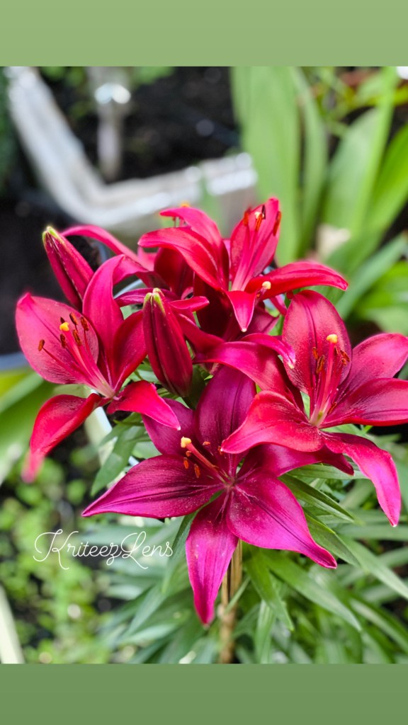Walks around the park, gardening in your backyard, watching the buds bloom, the cheerful bright colors can have a positive influence in seconds. Sharing what brings me a smile in these crazy times. Beautiful Lilies that bloomed recently with the love and nurturing of my Mom!